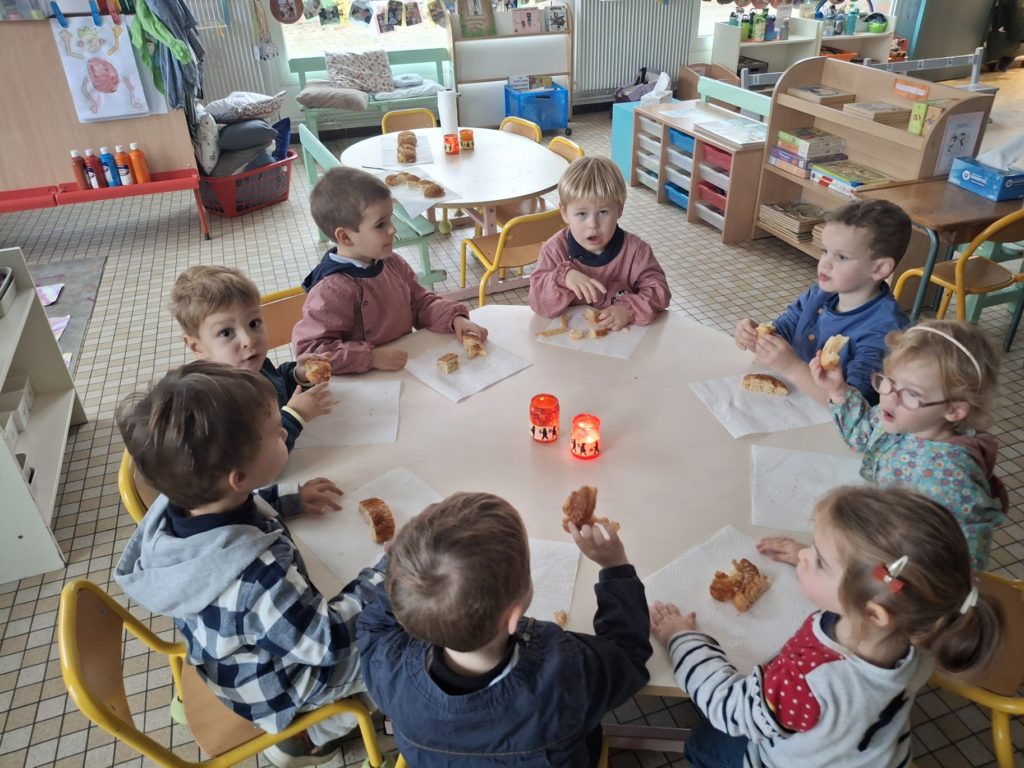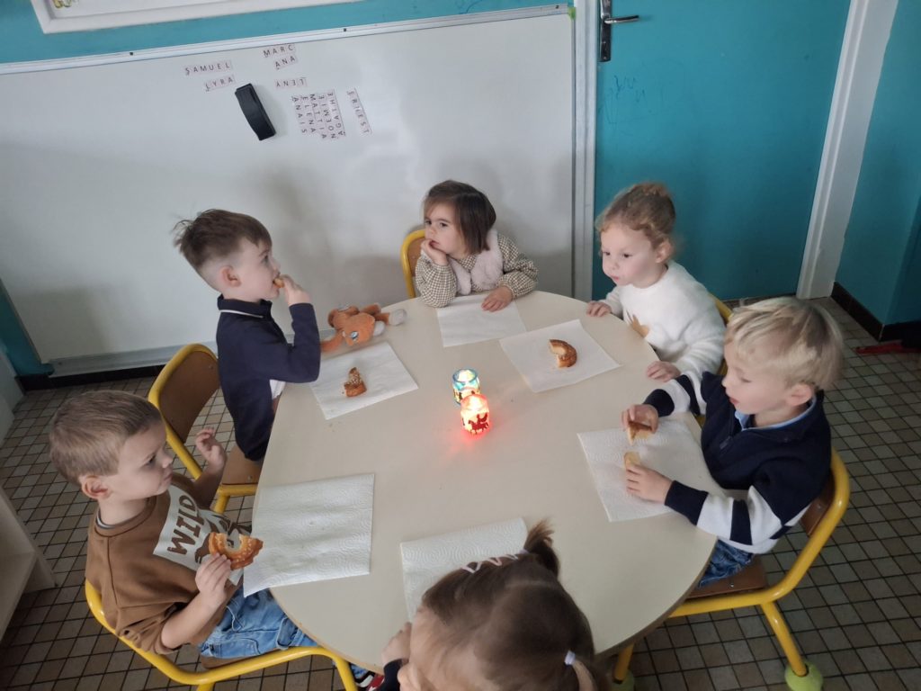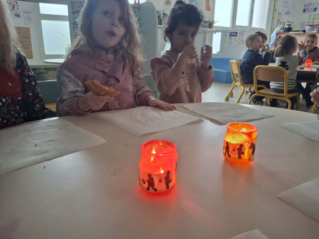 Goûter de Saint Martin avec les petites lanternes fabriquées par les enfants