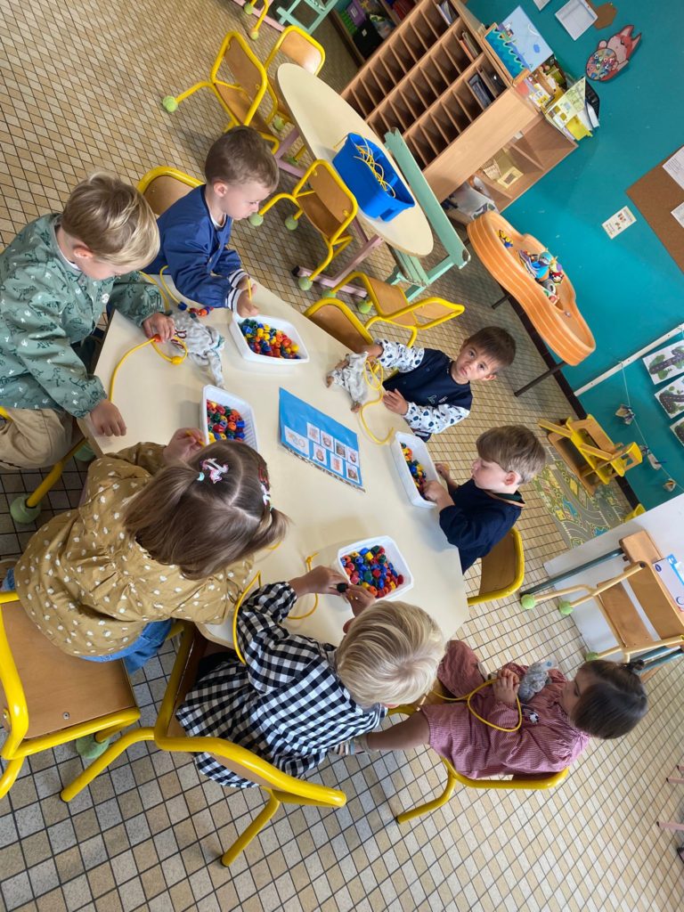 Numération dans le coin cuisine : 1 2 3 4 ! Gommettes Pochoirs à la peinture Modelage Enfiler des perles Traces de peinture… …en faisant rouler des billes Les beaux colliers de perles !