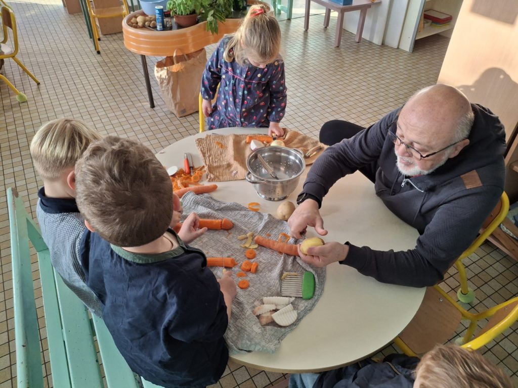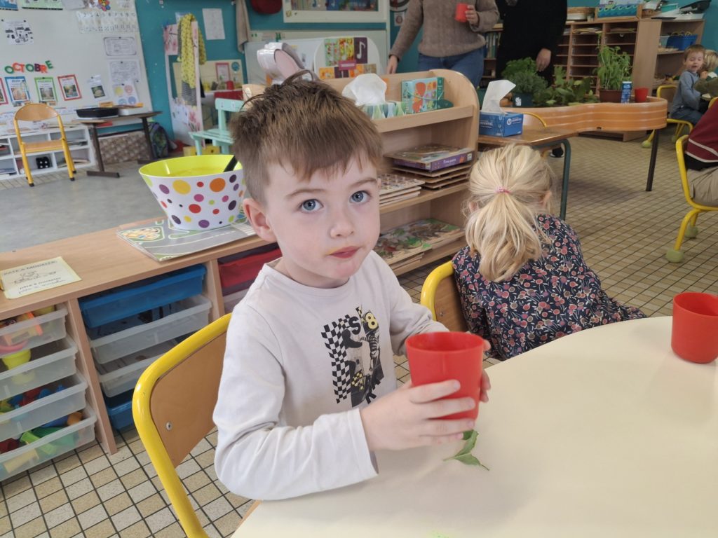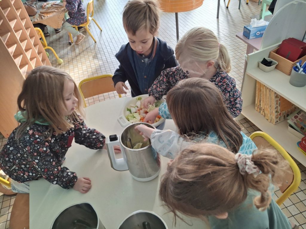 La semaine du goût : réalisation d’une soupe aux légumes aromatisée aux 4 herbes.